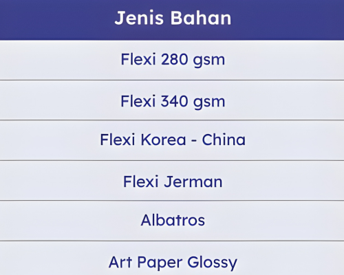 Kami menyediakan berbagai jenis bahan yang bisa kamu pilih, disesuaikan dengan kebutuhan dan budget-mu: