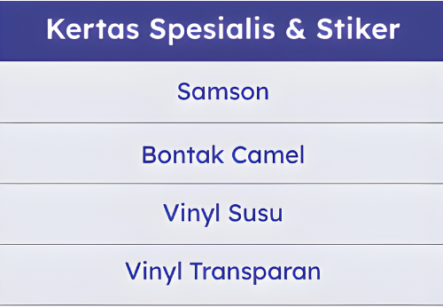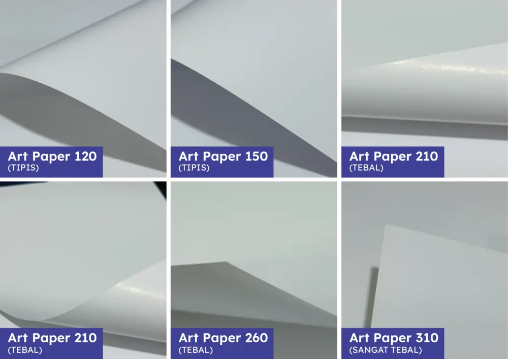 Kami menyediakan berbagai jenis kertas yang bisa kamu pilih, disesuaikan dengan kebutuhan dan budget-mu: