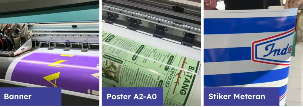 Siap melayani kebutuhan digital outdoor kamu dengan proses kilat! Cetak berbagai media promosi seperti banner, X-banner, poster (ukuran A2 hingga AO), hingga stiker meteran dan one way. Semua bisa jadi dalam 2-4 jam!