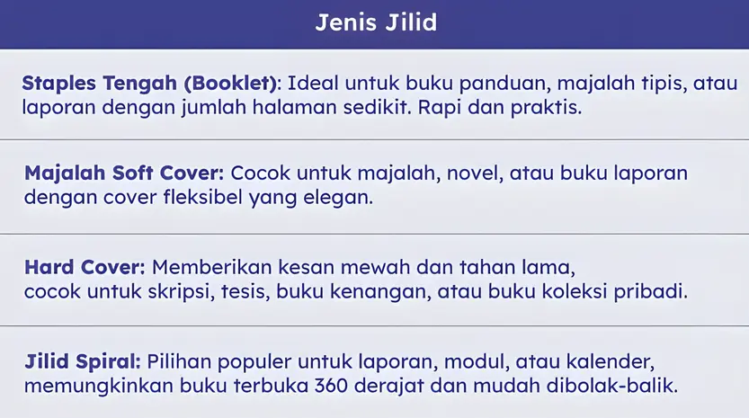 Kami menawarkan berbagai pilihan jilid yang bisa disesuaikan dengan kebutuhan dan budget-mu: